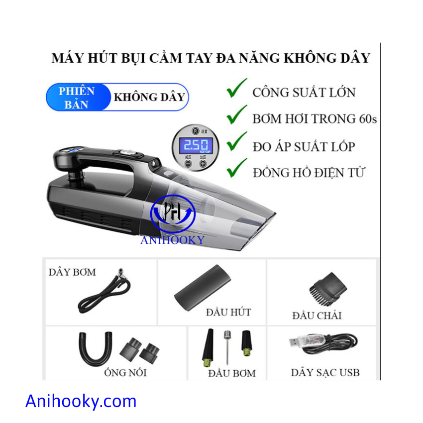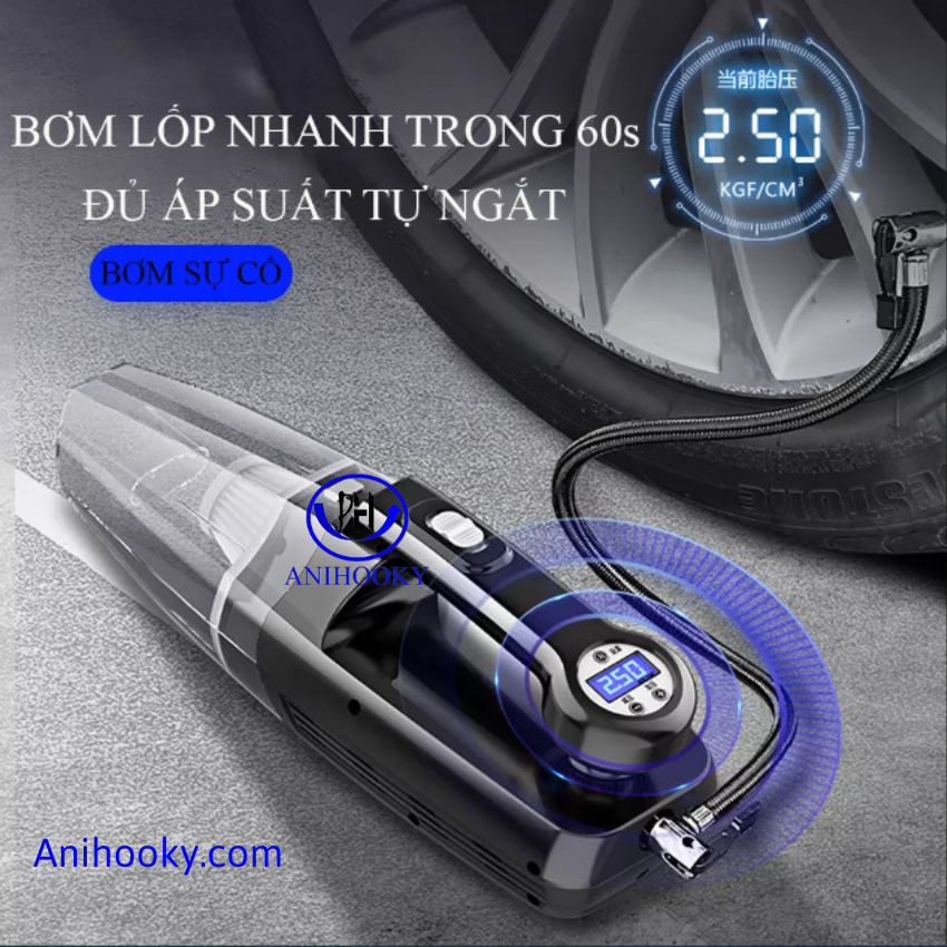 Máy Hút Bụi ô tô Anihooky đa năng 04 in 01 hút bụi - bơm lốp - đo áp suất lốp- làm sạch trong gia đình siêu tiện lợi