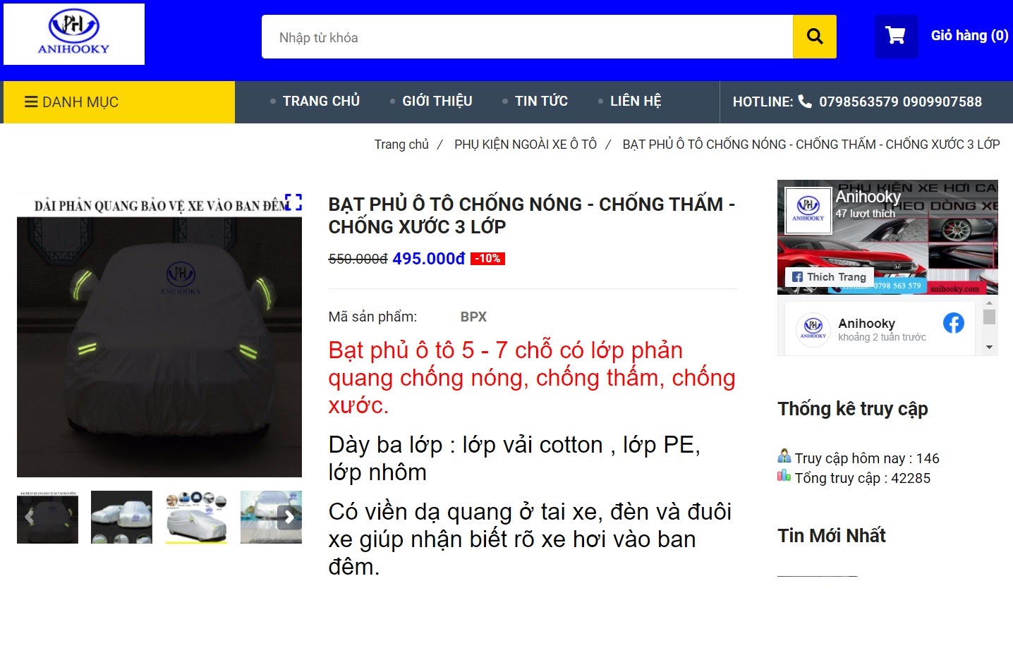 Anihooky là địa chỉ cung cấp các loại phụ kiện xe ô tô chính hãng, cam kết chất lượng đạt chuẩn và giá thành phải chăng. Đội ngũ nhân viên của chúng tôi sẽ sẵn sàng tư vấn bất cứ khi nào khách hàng có nhu cầu sử dụng sản phẩm bạt che nắng cho oto.